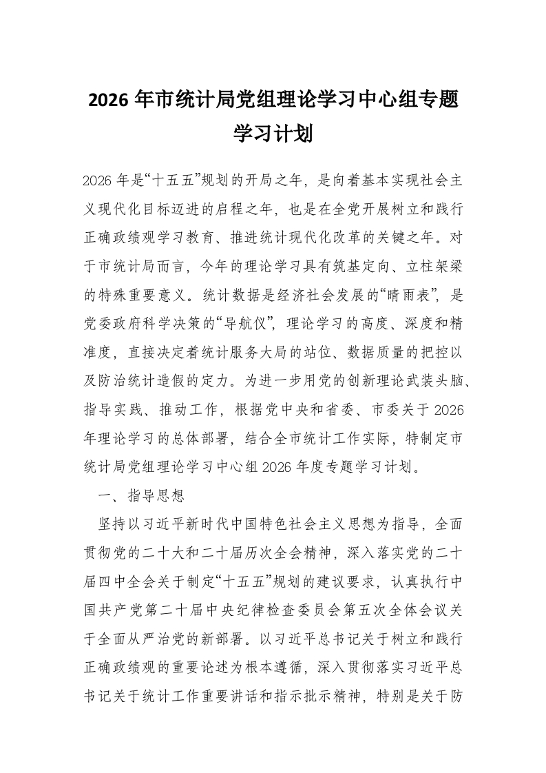 首页学习提升2026年市统计局党组理论学习中心组专题学习计划