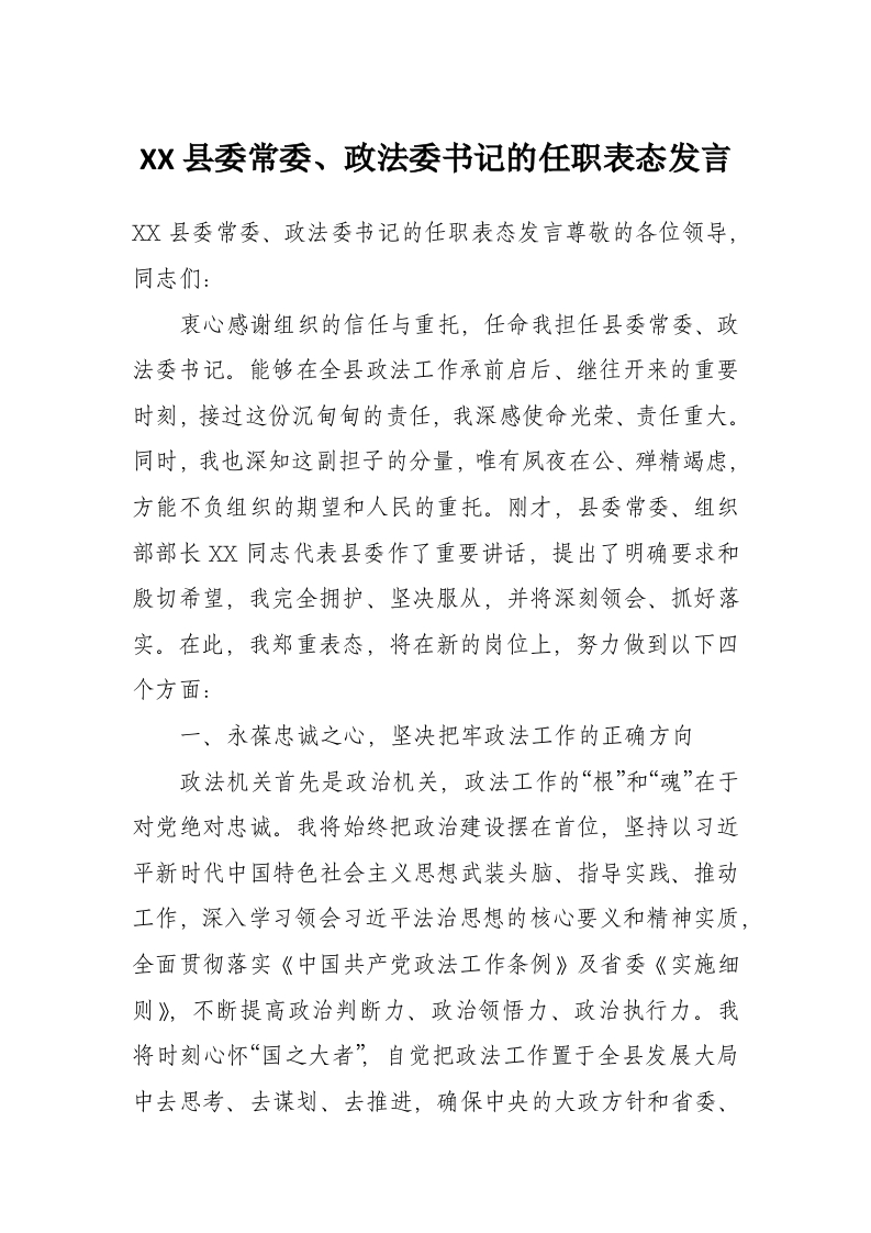 首页学习提升XX县委常委、政法委书记的任职表态发言