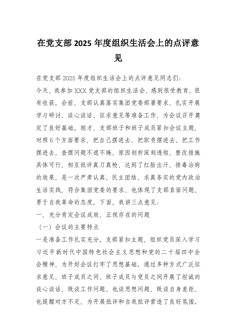 首页材料汇编在党支部2025年度组织生活会上的点评意见