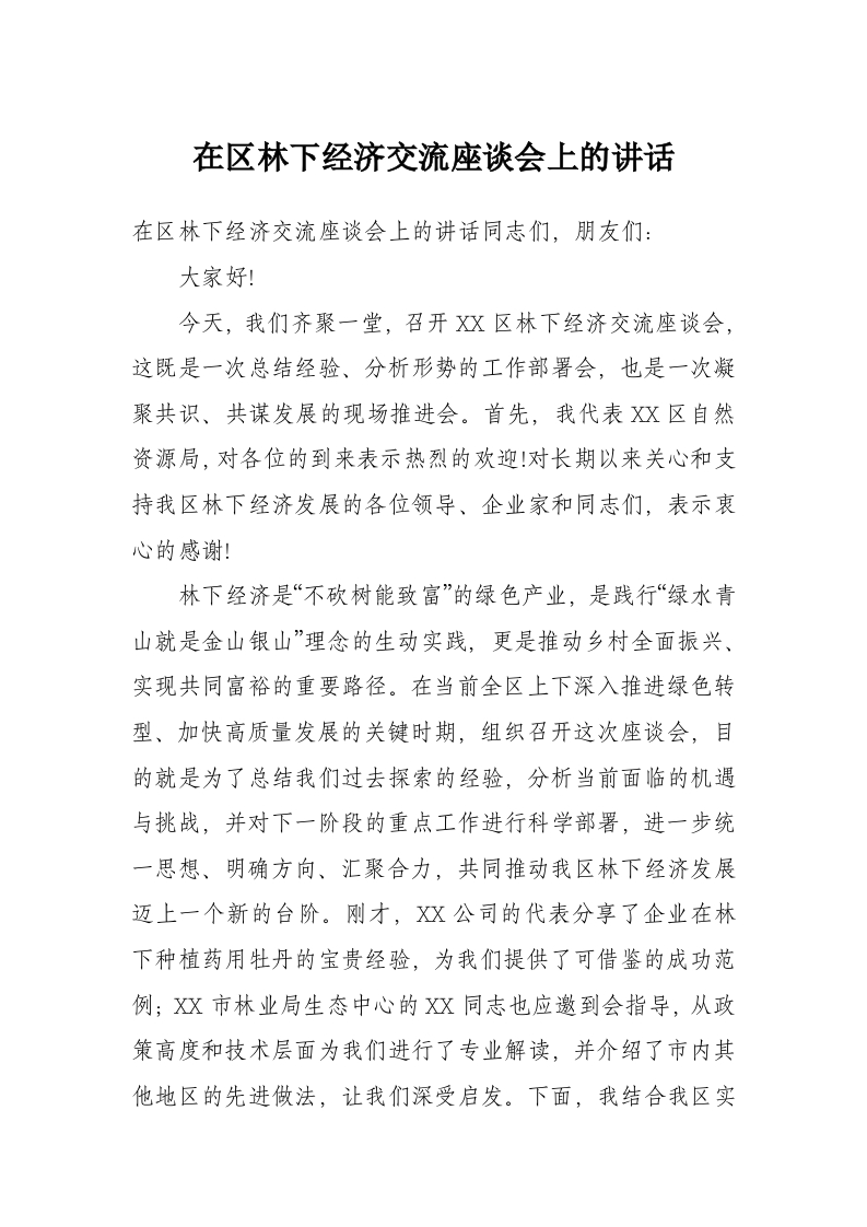 在区林下经济交流座谈会上的讲话