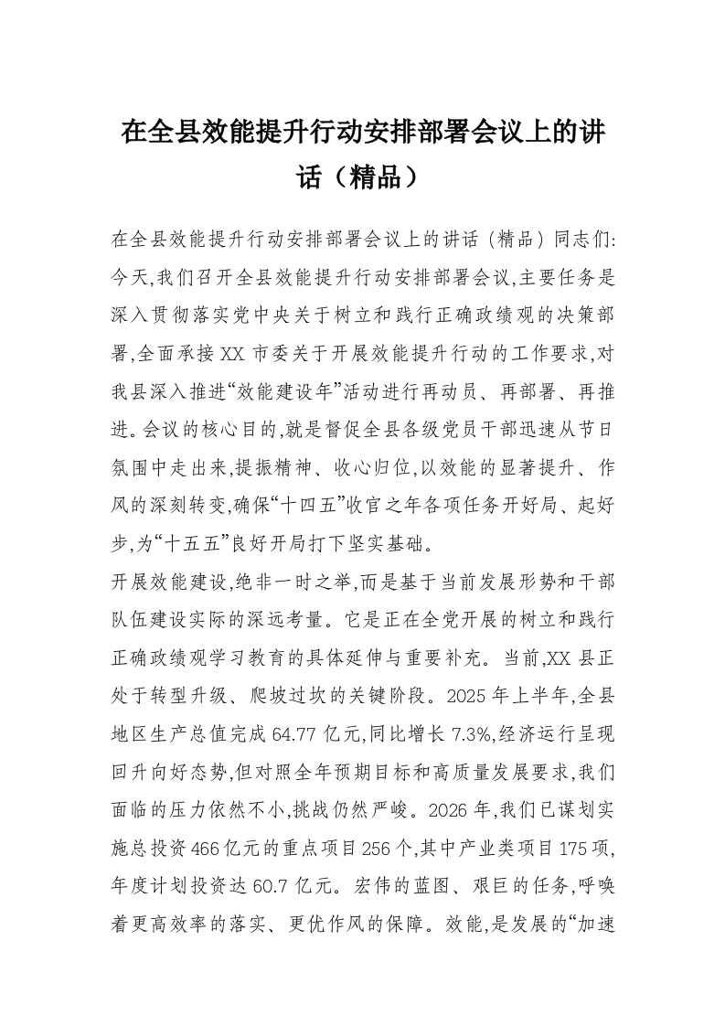 在全县效能提升行动安排部署会议上的讲话(精品)