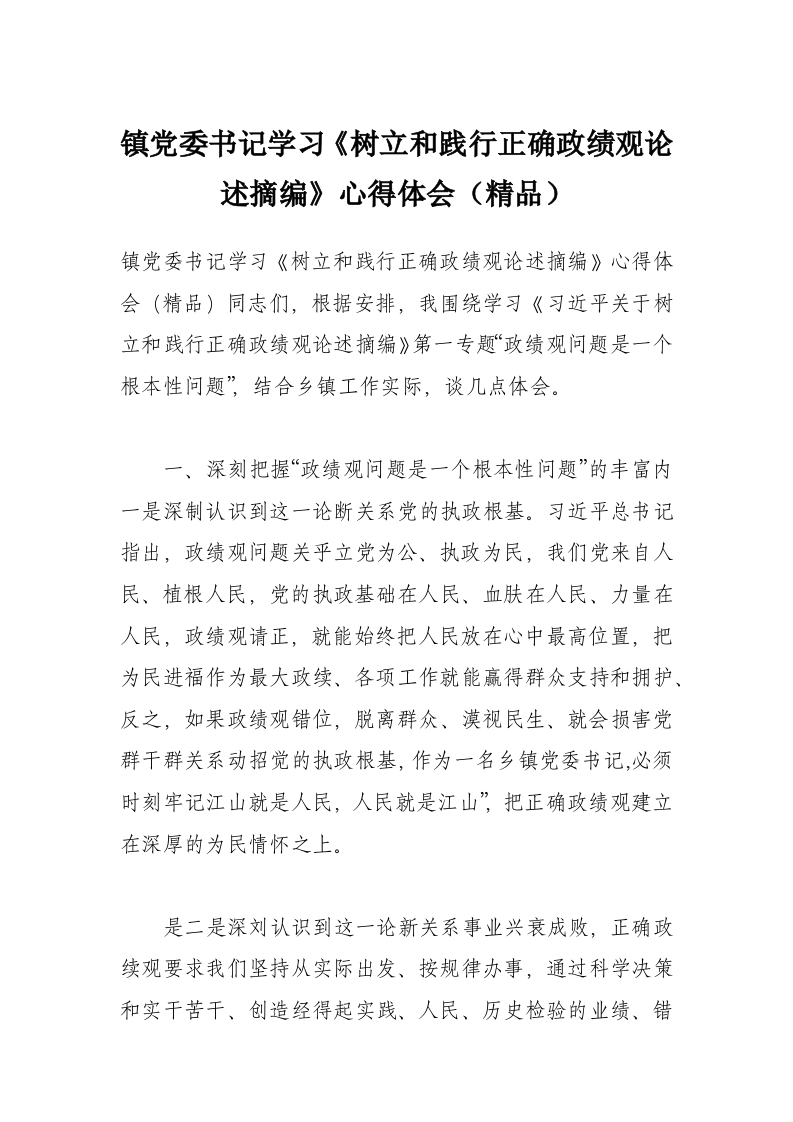 镇党委书记学习《树立和践行正确政绩观论述摘编》心得体会(精品)