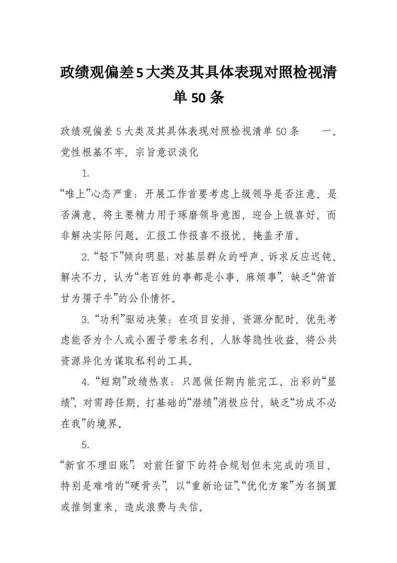 首页材料汇编政绩观偏差5大类及其具体表现对照检视清单50条