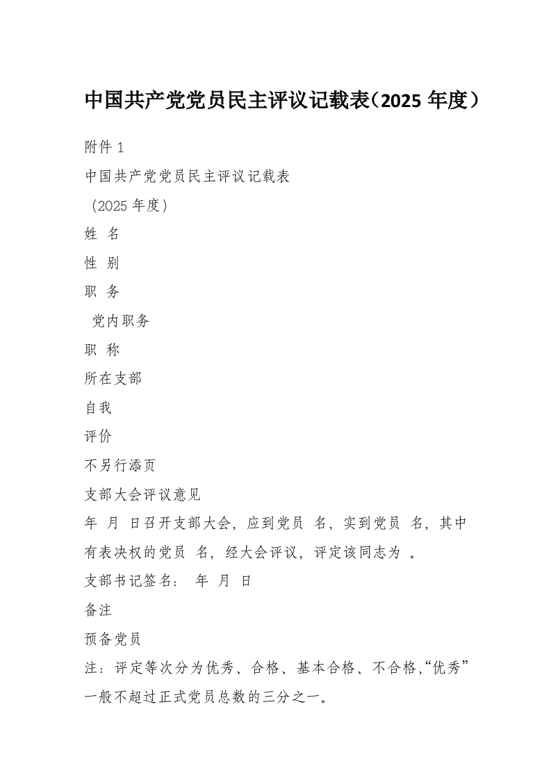 首页材料汇编中国***党员民主评议记载表(2025年度)