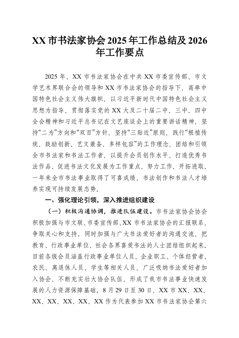 XX市书法家协会2025年工作总结及2026年工作要点