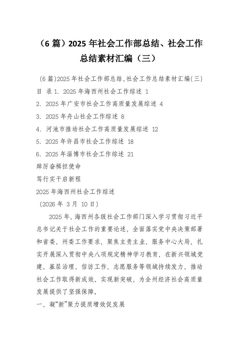 (6篇)2025年社会工作部总结、社会工作总结素材汇编(三)